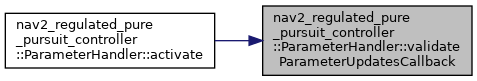 | rcl_interfaces::msg::SetParametersResult | validateParameterUpdatesCallback (std::vector< rclcpp::Parameter > parameters) |
